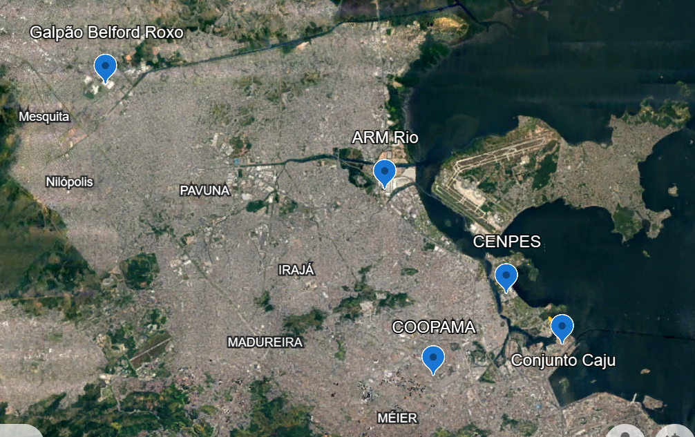 Localização dos sítios da Petrobras onde são realizadas as coletas: